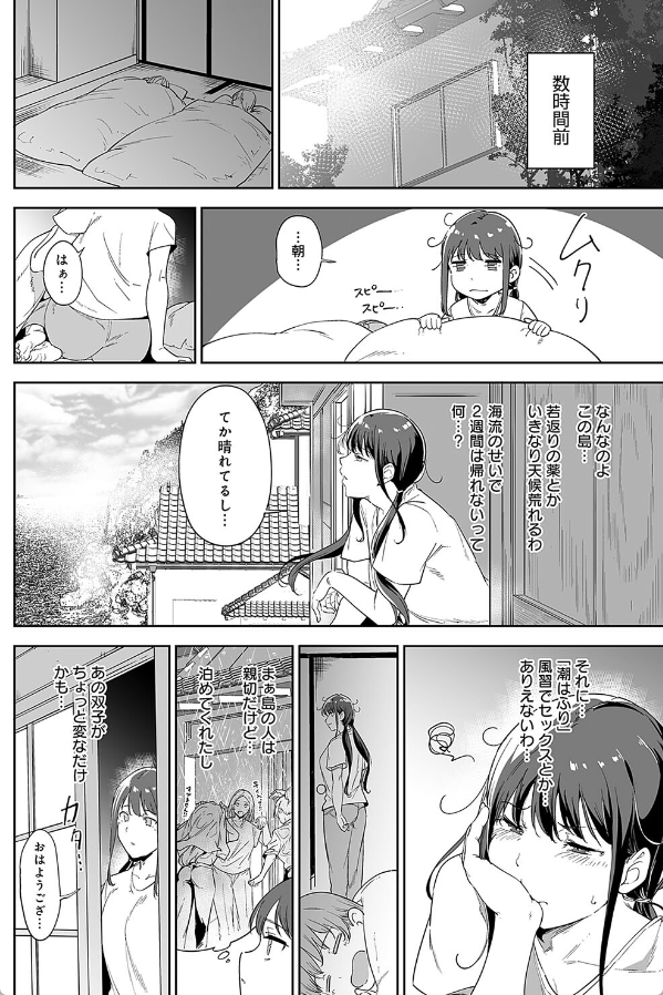 「若返りの薬」を探してとある離島にやって来た昴、美玖里、佐紀たち三人は、島でスナックを営む褐色巨乳双子のうい、うかに「潮はふり」という風習を教わる。豊作を願いSEXをしまくるという風習に驚く3人だったが、どうやら村では当たり前の様子…。