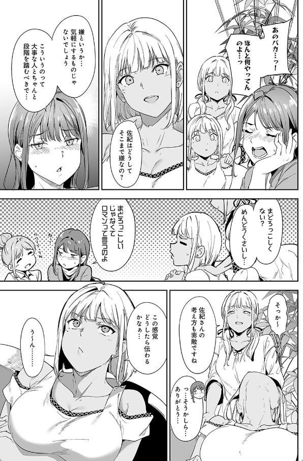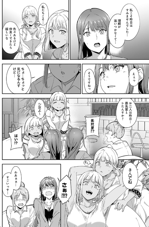 気軽にSEXをする「潮はふり」に佐紀が難色を示していると、2人が「うちらとヤッてみる?」とレズSEXを提案してきた! SEXに興味のある美玖里は、うい・うかと3人で触り合う濃厚エッチを始めるが佐紀はそれを見ているだけ。しかし双子に責められてイキまくる美玖里を見ていると、佐紀もムラムラしてきて――!?
