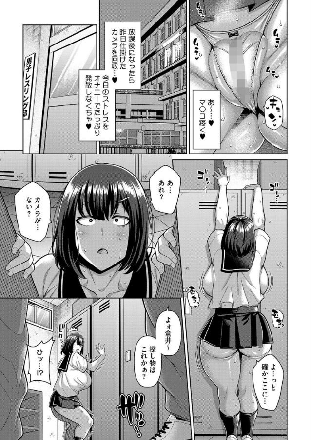 根暗な女子・倉井さな子。クラスメイトから引かれるほどの負のオーラを放つ彼女だが、彼女には秘密の趣味があった。それはレスリング部マネージャーの特権を生かしたオチ〇チンの盗撮♪ 今日もカメラに収めた動画でオナろうとするが、部員たちにつかまってしまいお説教タイム……と思いきや、男子全員がチ〇ポむき出しで倉井を囲み……。まさかのご褒美フィーバータイムに♪