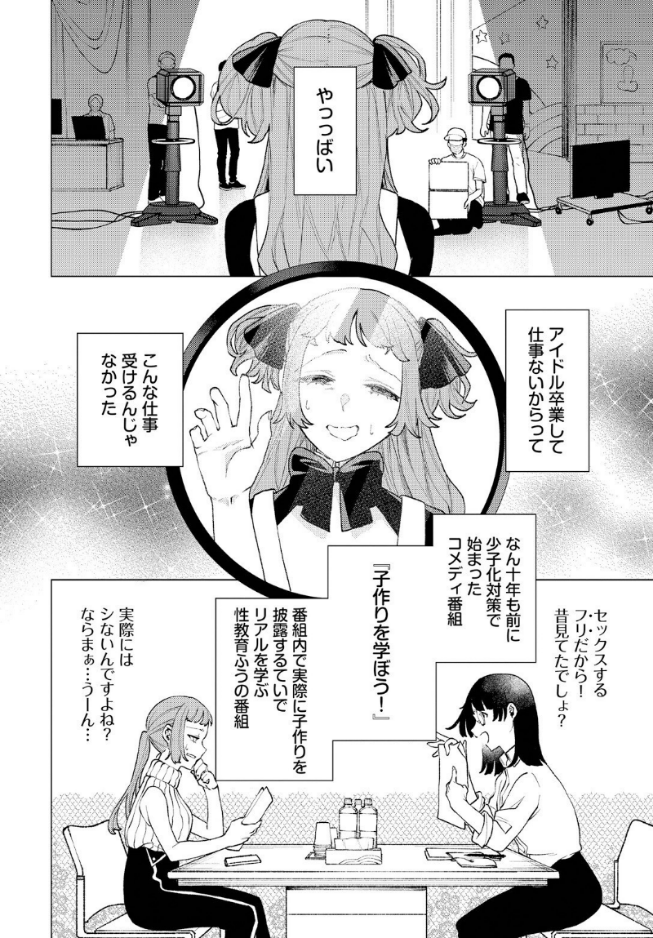 【いいコのみんな集まれ〜! ちょっぴり過激(?)な『子作り』の勉強のお時間だよ!】超インモラルファッカー・ヒノ山田が贈る、元アイドルのリアル種付け♪少子化対策で始まった、番組内で実際に子作りをするテイの『性』教育風番組が放送されている世界。そんなトンデモ番組のオファーが来て悩んでいた、元アイドルの音無静子は、仕事がないからと渋々受けることに…。約束とは違う状況に戸惑いつつも、『お金と今後の芸能活動のため』と意気込んでいたが、そこで待っていたのは容赦ないおもちゃプレイや理性崩壊寸前の激しいプレイで!?