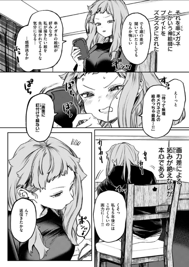 「もうちょっと男女らしいこととか そういうの嫌ですか?」SNSで嫉妬していた神絵師は、同じ学校の先輩だった……。妬みから変に勢い余って交際を申し込むと、あっさりOKをもらえた。だけど付き合って4ヶ月経っても、先輩は受験もあって絵ばかりの日々。絵だけじゃなくて私のことも見てほしい……一歩進展したいカノジョと奥手男子の思春期えっち!