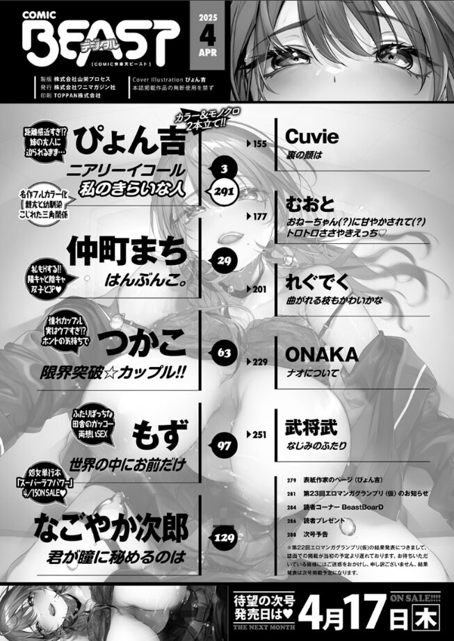 - 作者 : ぴょん吉 仲町まち つかこ もず れぐでく Cuvie 武将武 むおと なごやか次郎 ONAKA