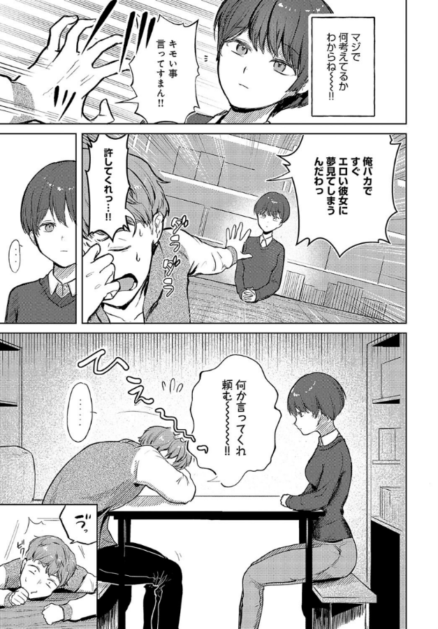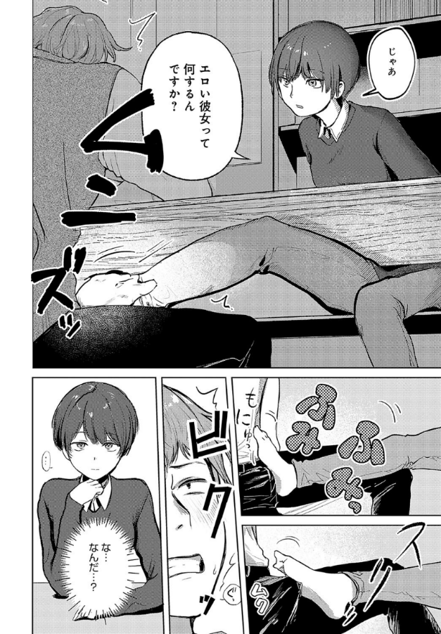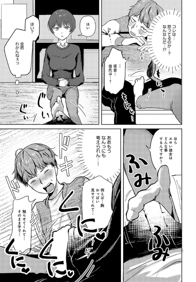 主人公は、彼氏がいるという噂のクールでジト目、ミステリアスな雰囲気を持つスレンダーな1年生、坂倉がドンピシャで好み!「坂倉に『実はエッチ』という属性が加われば最強だ」と友人に熱弁していると、まさかの坂倉本人が登場!?友人は逃げてしまい、主人公は坂倉と2人きりに…。「俺、バカだからすぐエロい彼女に夢を見ちゃうんだ」と謝罪すると、坂倉は「じゃあ、エロい彼女って何をするんですか?」と言いながら股間を足でふみふみしてきた!よくわからないけど「おっぱい見せてくれて…」など自分の思うエロい彼女像を伝えてみると、なぜかその通りにおっぱいを見せてくれたり手コキしたりしてくれる♪それからというもの頼めばなんでもしてくれる彼女に、ずっと気になっていた噂の彼氏の存在を聞いてみると呆れた顔をしてくる坂倉。バカにされたと感じた主人公は怒りに身を任せて坂倉を抱くものの、なぜか板倉は処女で──!?新進気鋭の抒情派作家・みなまっくす先生描く、細巨乳な後輩JDと感情すれ違い愛されエッチ!