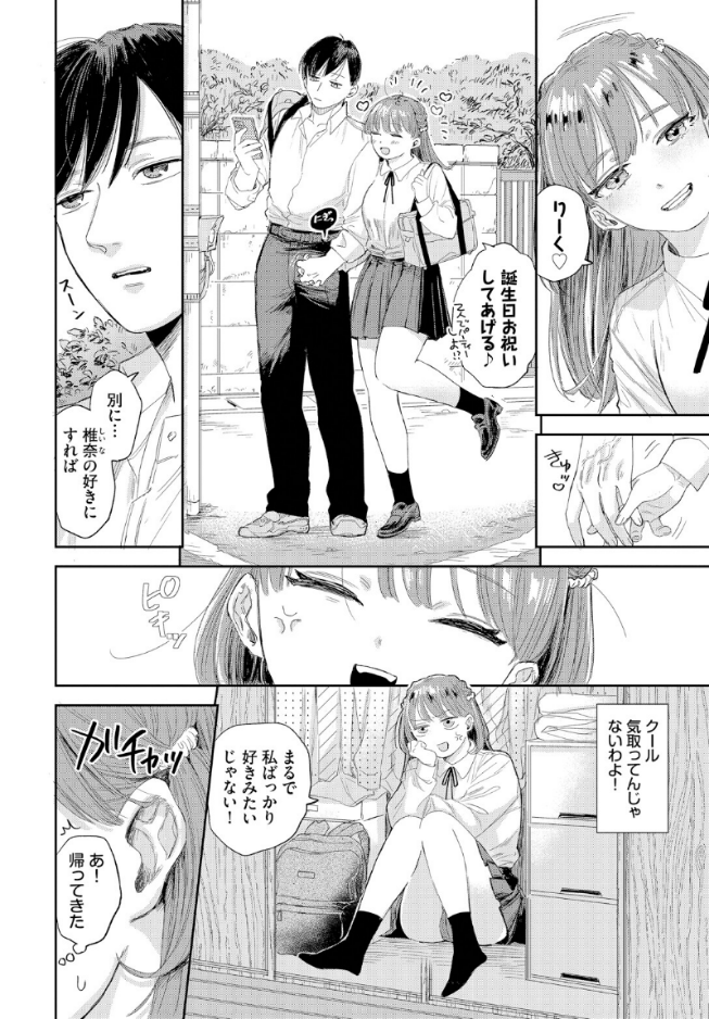 【カレの心の氷を溶かすあつあつイチャらぶ!】個性派ラブコミッカー・せきついが贈る、凸凹カップルのナカ深まる求愛SEX♪無愛想な陸とつきあっている積極的で明るい椎奈。誕生日サプライズで驚かせようと陸の部屋を飾りつけしてクローゼットに隠れていると、部屋にやってきた陸は無反応だった。喜んで欲しくて頑張ったのにと椎奈が泣きそうになっていると、陸の歓喜の声が! うれしさと陸の服の匂いに包まれていた椎奈は一人で興奮してしまい…!? 彼氏の本音を引き出す至極のらぶらぶ中出しえっち!