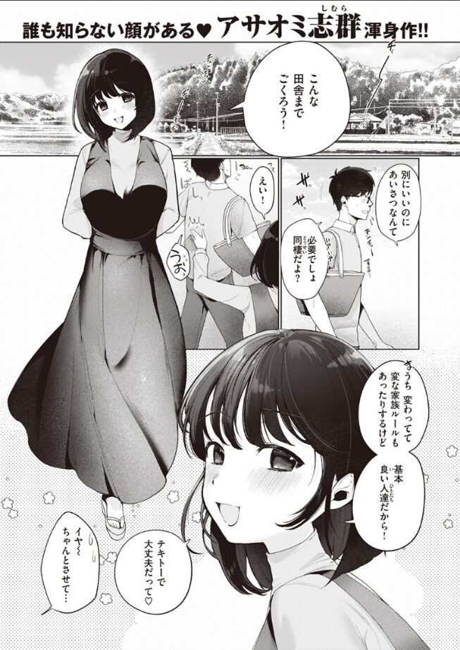 「…家族…だから…っ 食後の運動(セックス)してるだけだけど…ッ」 同棲を機に、彼女の田舎まで挨拶しに向かうことに。 「うち、変わってて変なルールとかもあるけど……」と言う彼女に付いていった実家は……家族内セックスが当たり前の家だった!? 大好きな彼女は当然のようにリビングで父親にハメられ、夜は弟からの夜●いをすんなり受け入れる……こんな狂った家族ルールって、アリ!?
