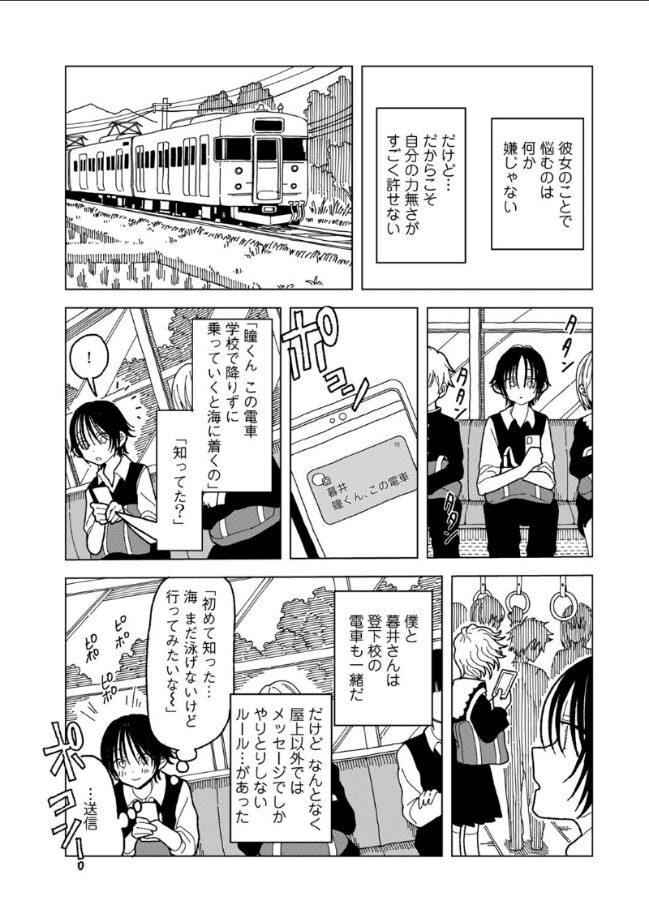 『何を食べたら…もう戻れなくなってくれる?』雑誌掲載時からSNSにて大反響を巻き起こした超話題作! 驚異の61ページで抉り出す、狂愛。入学式で、おもちゃを手にする女生徒に目を奪われた男子校生・瞳。同じクラスにいる彼女を追いかけて向かった屋上で、問題の女生徒・暮井と初めて対面する。とりとめのない言動に振り回されつつも、不思議な魅力にどんどん惹かれていく瞳は、次第に彼女の中の’異常すぎる世界’へと足を踏み入れていく――。(COMICキスハグvol.5 収録作品)