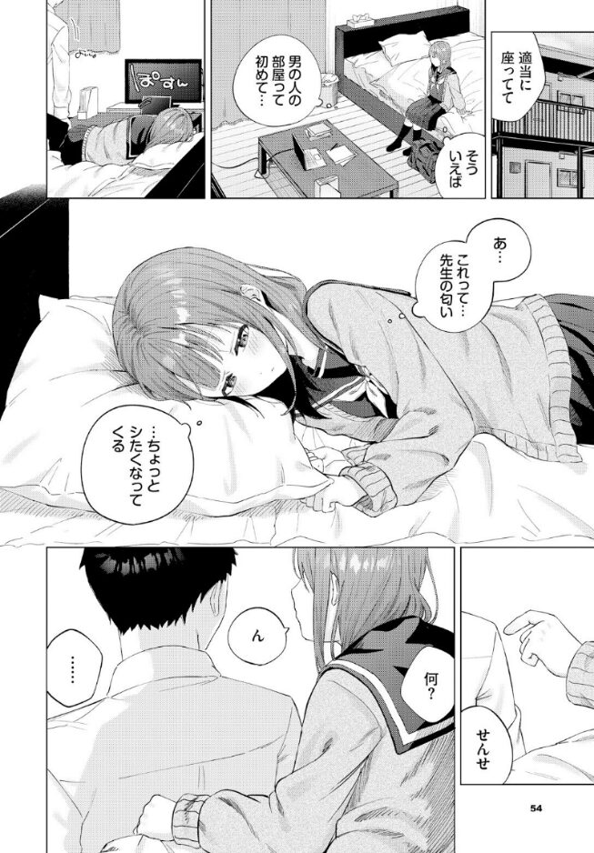 【あなたに包まれたい…心も身体も温まる着衣えっち♪ 】アオハル叙情マエストロ・煤雲なぎが描く、教師×生徒の恋幕譚番外編! 先生の家に初めて訪れたJKのあかり。慣れない部屋と先生のベッドの匂いに気持ちが抑えられず、先生も制服姿のあかりに興奮しているようでそのまま着衣Hへ…。そして制服の上に射精してしまった先生に対し、あかりはねだるように自らアソコに挿入していき…!? 肌のぬくもりで心も身体も温め合う、小柄な彼女とラブラブSEX♪