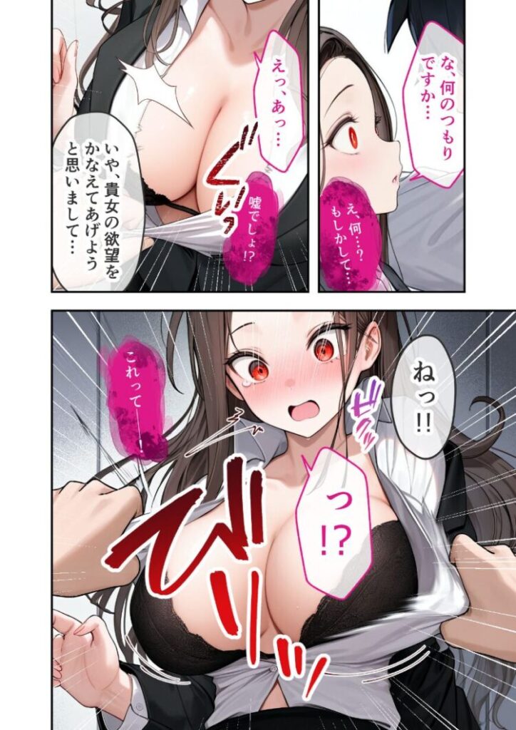 「ちょっと佐藤さん!何回言えば分かるんですか!?」「す、すみません……」俺・佐藤はうだつの上がらない気弱なサラリーマン。今日も些細なミスを繰り返し、経理課の堅物美人・霧島さんに叱られていた。そんな俺には誰にも言えない、特別な能力がある。【えっちしたいえっちしたいえっちしたい!】他人の悪意や欲望などの汚い心の声の形を、はっきりと見ることができるのだ。「ちょっと佐藤さん!聞いてます!?」【おま〇こキュンキュンしててやばい…!早くち〇ぽ欲しい…!】【ぐちょぐちょにハメ倒されたいよぉ……!!】まさか真面目な霧島さんがこんなド変態女だったとは……。その欲望、俺が叶えてやろう。【注意事項】※本作品のシチュエーションは全てフィクションです。登場する人物や設定等は、すべて架空のものとなります。※この作品内に登場するキャラクターは全員20歳以上です。※本作品はStable Diffusionを使用して制作しております。※犯罪、その他違法行為を美化または助長する意図はございません。