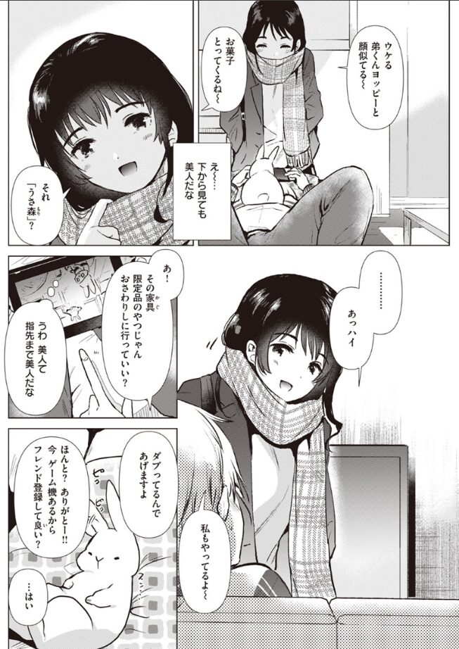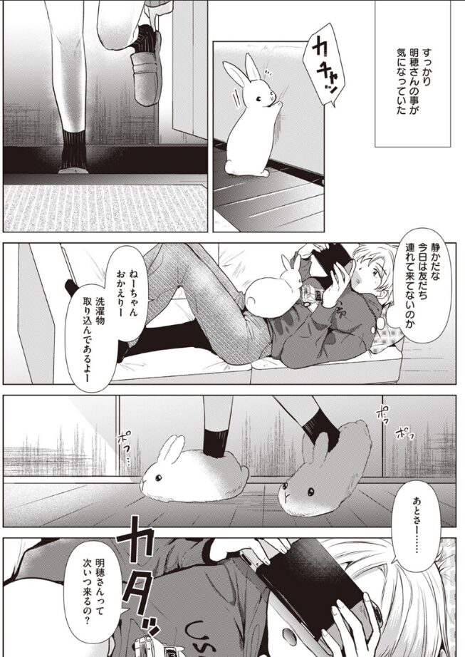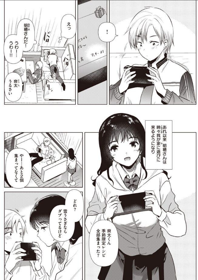 「弟くん初めまして。千葉明穂(ちば あきほ)でーす」姉ちゃんが連れてきた友達の明穂さんは、なにかと俺をかまった。やってるゲームが同じなこともあったけど、時々我が家に遊びに来てはゲームの話をする仲になった。 ある日、姉ちゃんに鍵を借りたと言って、明穂さんが一人で家に来た。「…会いたかったです」と自分の気持ちを伝えたら、「私も会いたかった」と軽くキスをされて……そして、そのまま……。