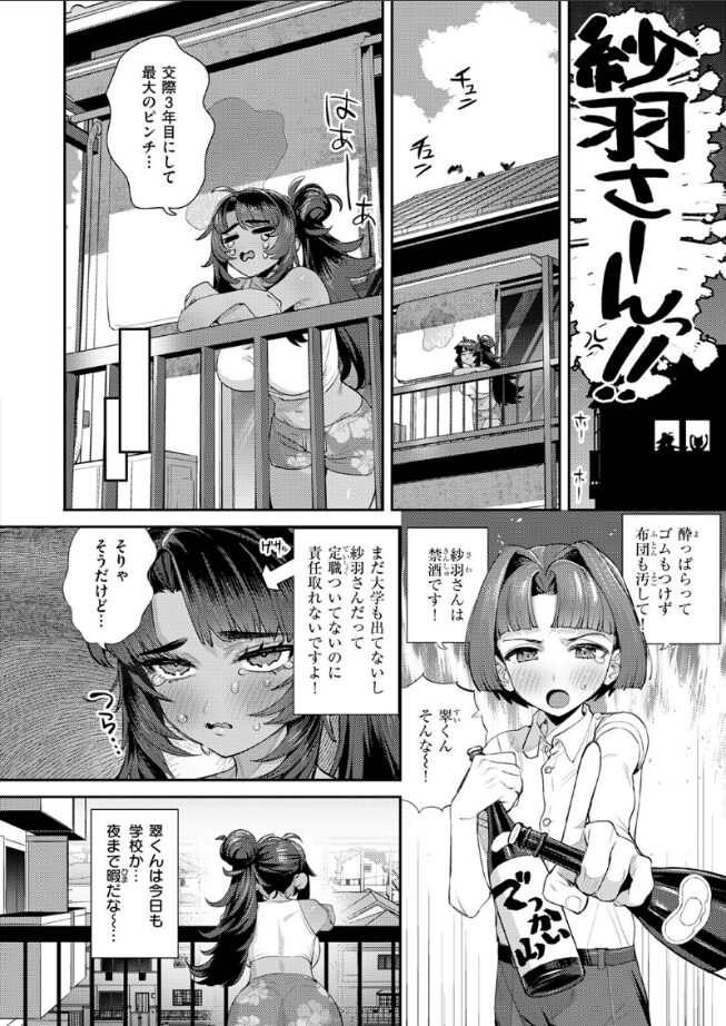 (禁酒がんばってよかったぁ…♪)酔っ払ってゴムもつけずに布団も汚しちゃった結果、彼氏の翠(すい)くんから禁酒令が出てしまった紗羽(さわ)。職にも就かず、年下の彼氏に居候させてもらって、叱られてベソかいて本当に情けない……。かといってお酒を飲んだら翠くんが怒っちゃうし……そうだ! お酒飲みたい欲はオナニーして発散すれば解決では!?そう決めた紗羽はコンビニでゴムを買い、翠くんが帰ってくるまでオナニーを決意。ご褒美あまあまえっちのために、紗羽は我慢できるのか――