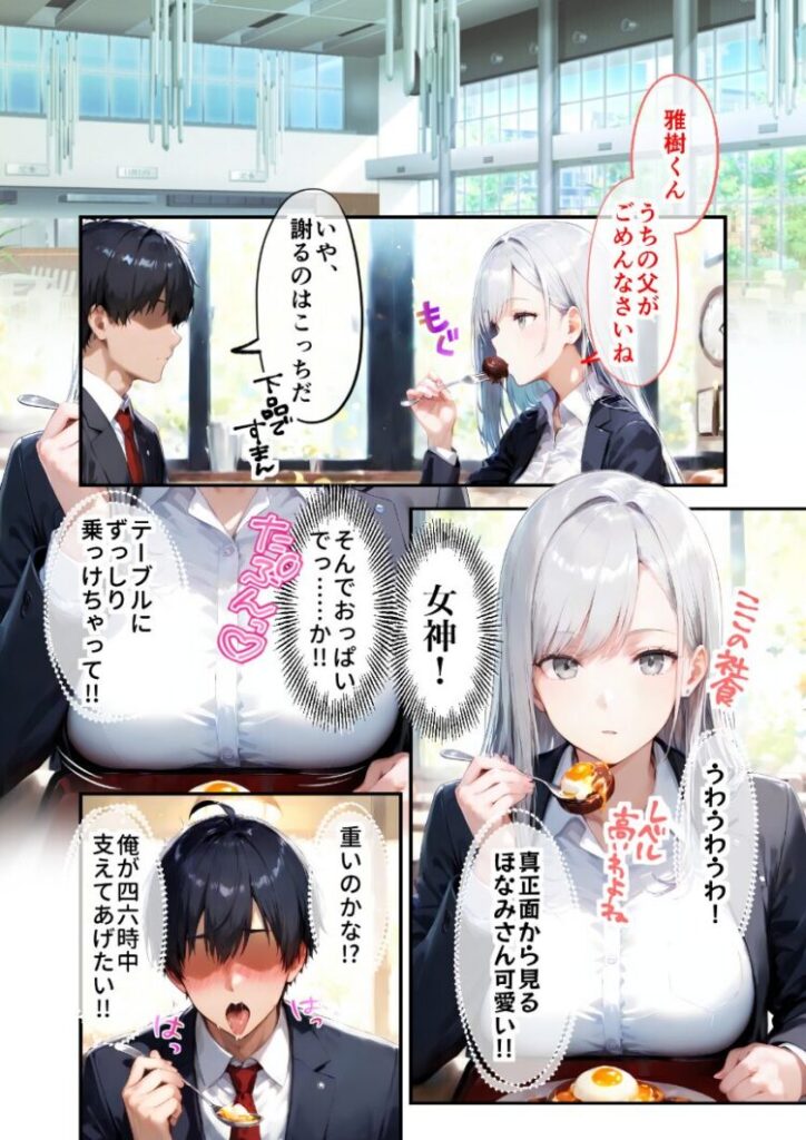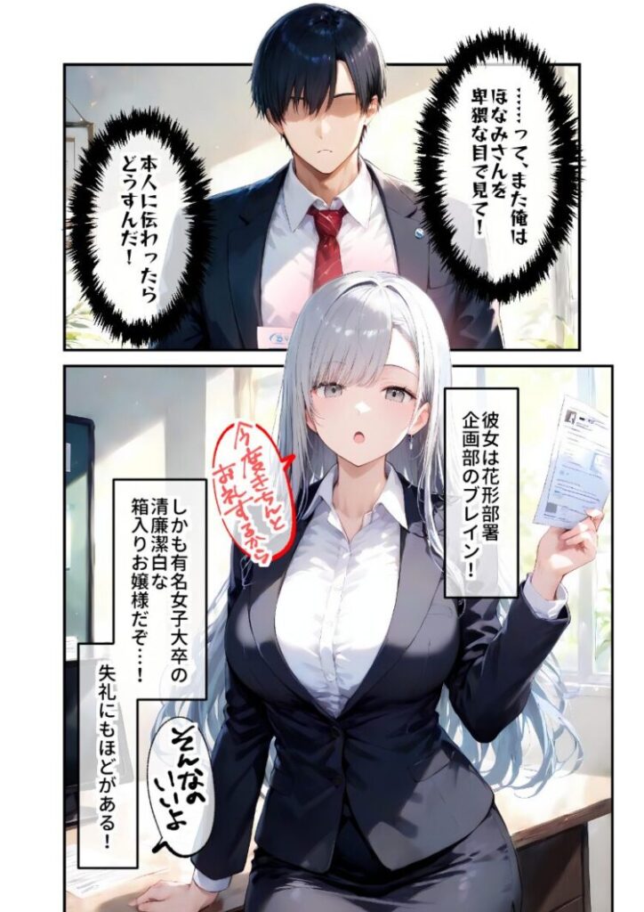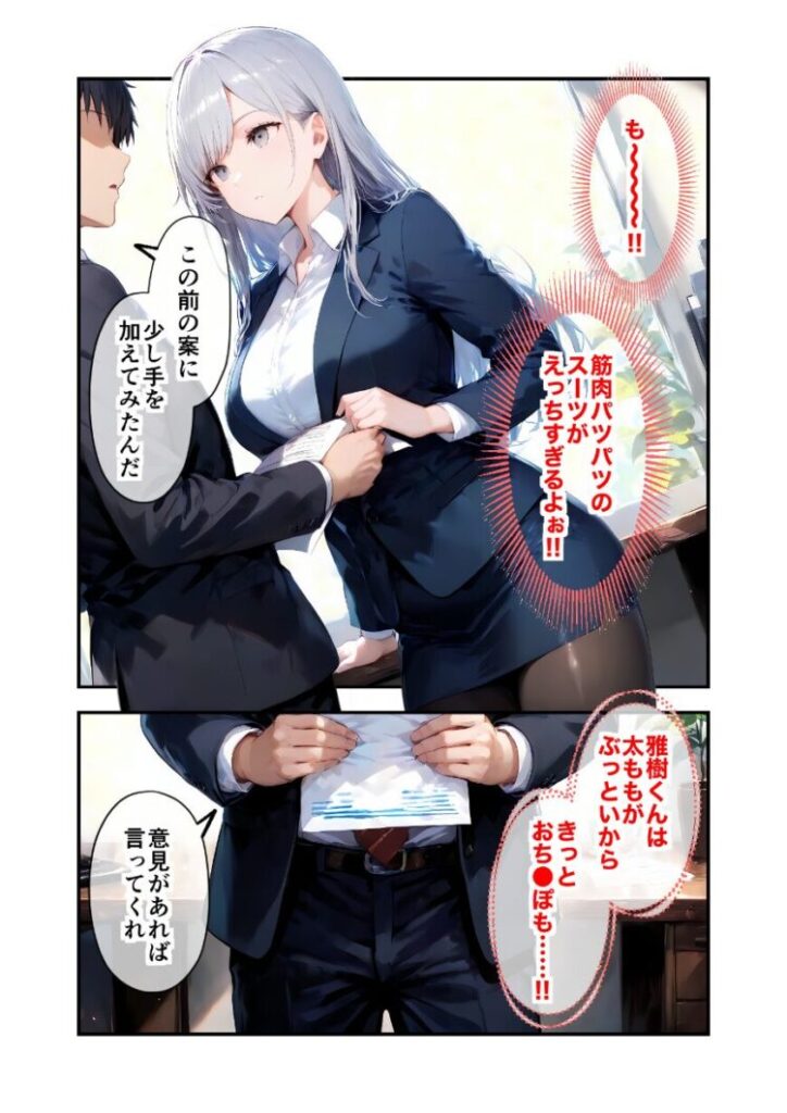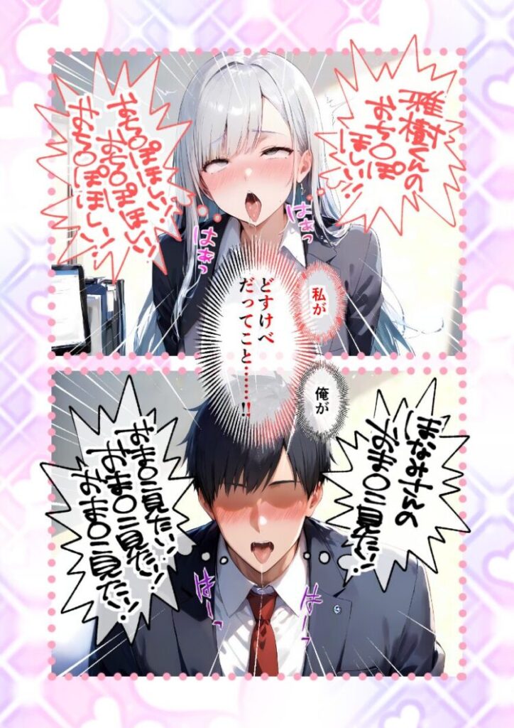 社長令嬢の完璧お嬢様・白咲ほなみ。若手営業の期待の星・灰谷雅樹。社内きってのエリートカップルの彼女たちにはお互いに隠さなければならないヒミツがあった。それは――「雅樹くんのおち〇ぽほしい!おち〇ぽほしい!おち〇ぽほしい!おち〇ぽほしい!」「ほなみさんのおま〇こ見たい!おま〇こ見たい!おま〇こ見たい!おま〇こ見たい!」とんでもないドスケベだってこと!!本編50P+AIイラスト4P収録!【注意事項】※本作品のシチュエーションは全てフィクションです。登場する人物や設定等は、すべて架空のものとなります。※この作品内に登場するキャラクターは全員20歳以上です。※本作品はStable Diffusionを使用して制作しております。※犯罪、その他違法行為を美化または助長する意図はございません。