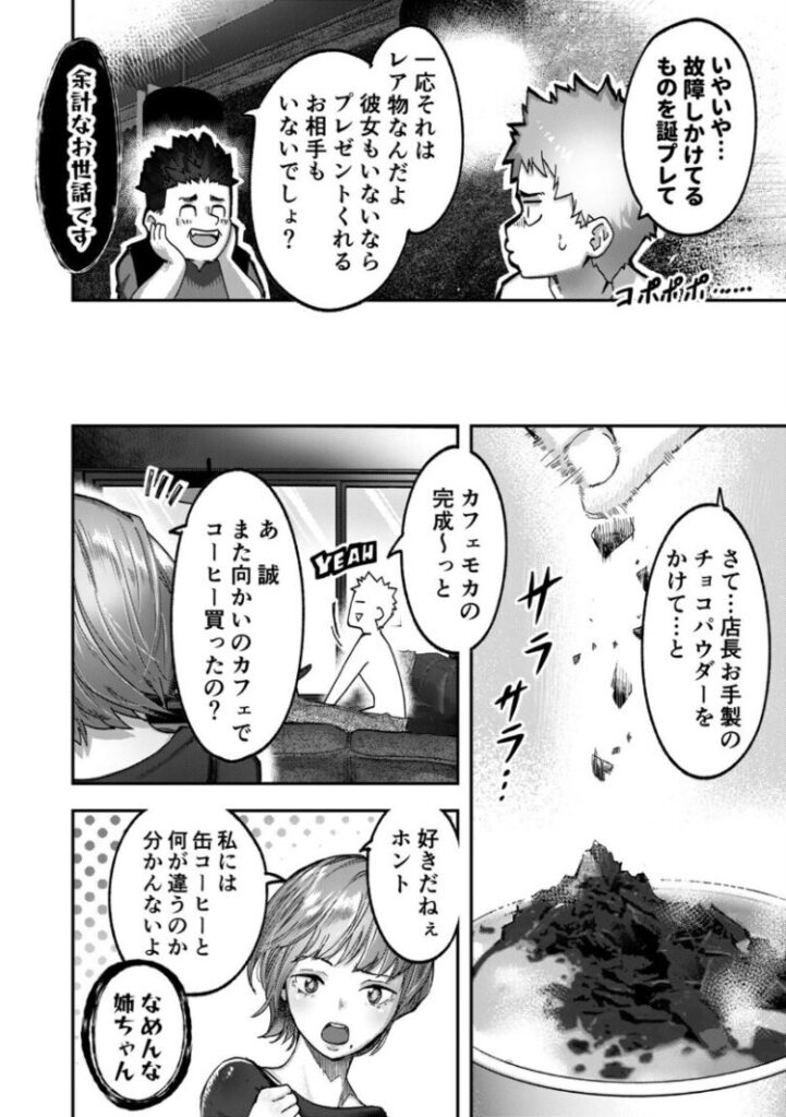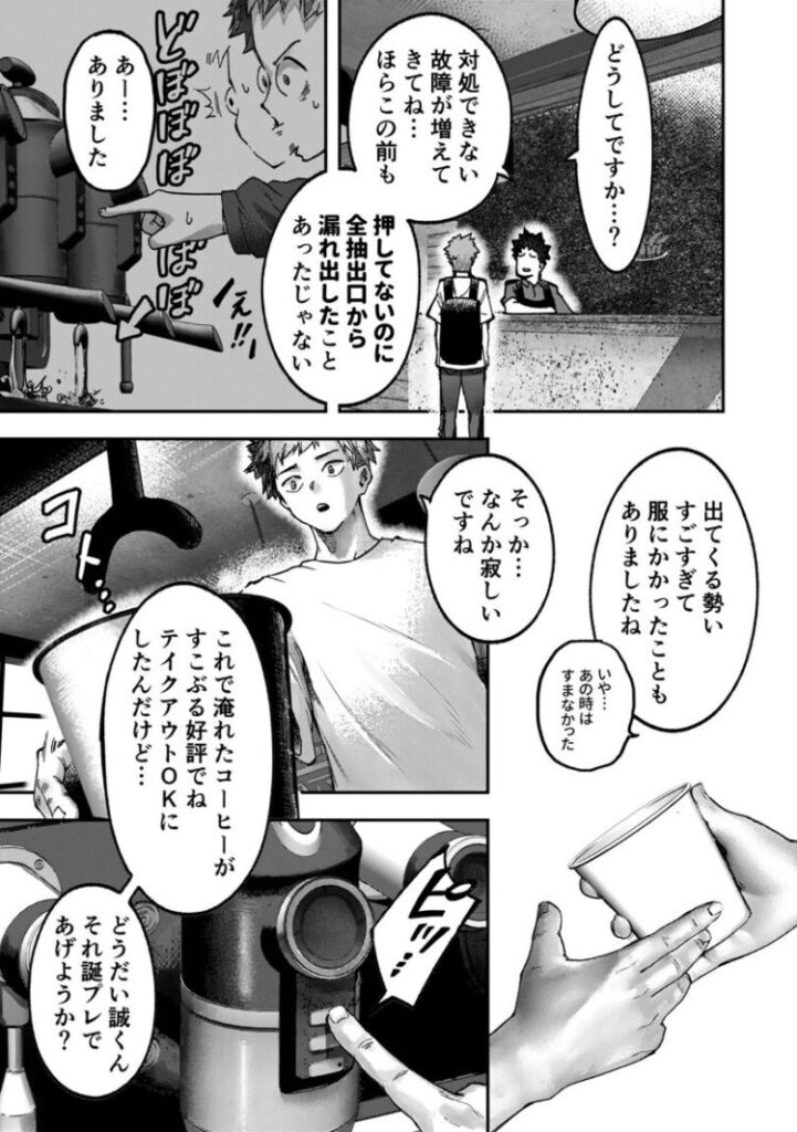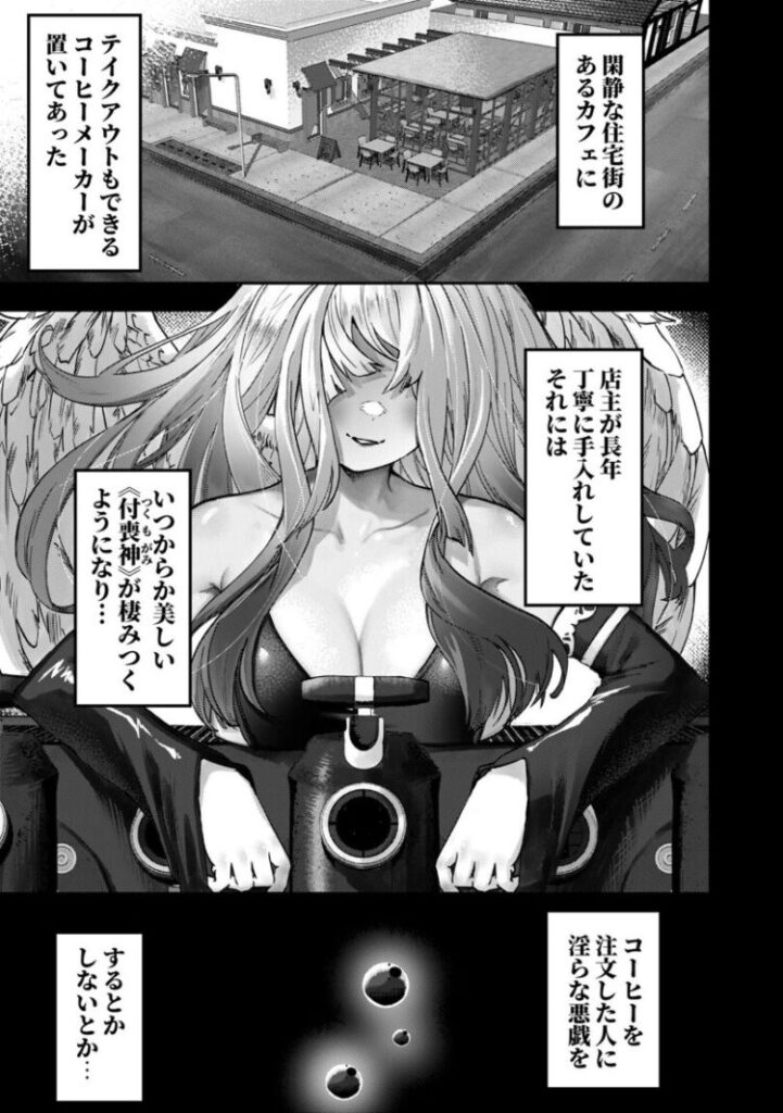 いたずら好きの付喪神が宿ったコーヒーマシンから、テイストの異なる美女が現れては男性を癒すというエロファンタジー。彼女がいない大学生の誠。誕生日に馴染みの喫茶店のマスターが淹れてくれたコーヒーを飲もうとしたらセクシーな美女が現れて…