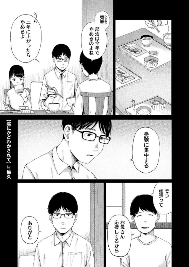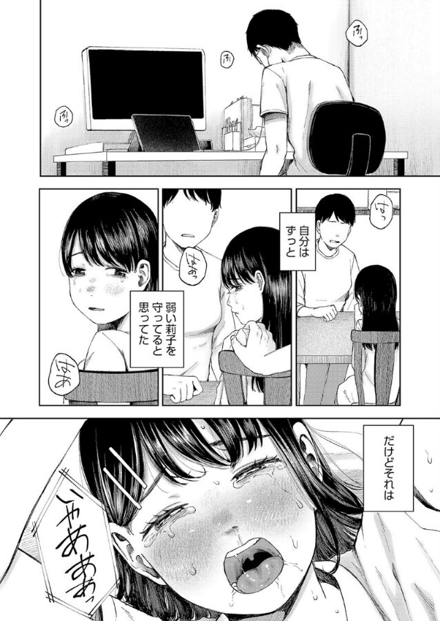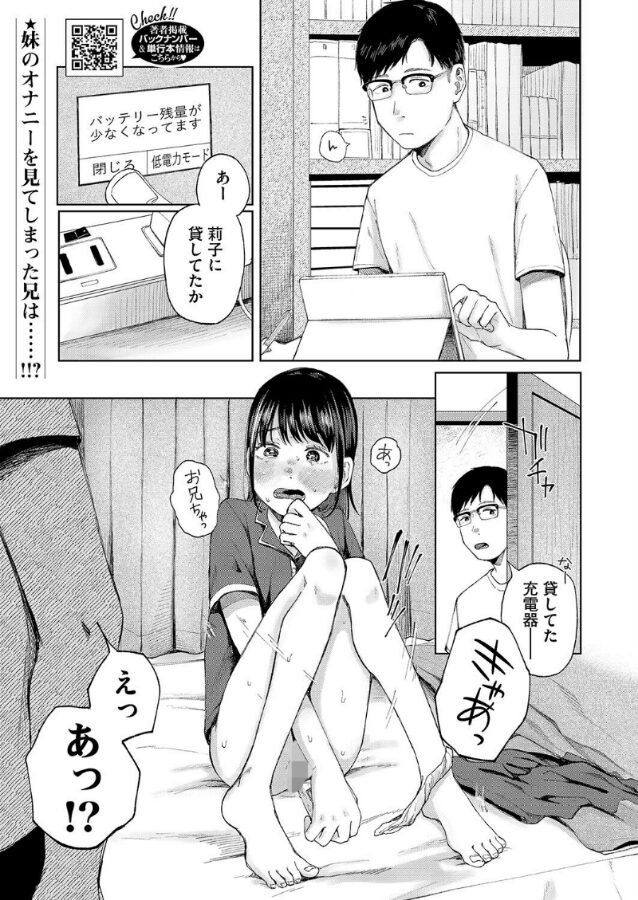 秀明は年の離れた大人しい妹の莉子に母の圧が向かう事を避ける為、部活を辞め、勉強三昧の日々を送っていた。ある晩、秀明は莉子に貸していた充電器を取りに莉子の部屋のドアを開けると自慰をしている妹の姿を目撃してしまう。その後、自室に戻ってからもその姿が目に焼き付いて忘れることが出来ず……。